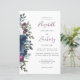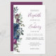 Ce faire-part de mariage romantique présente un bouquet floral aquarelle de prune violet et bleu marine fleurs et verdure. Le texte personnalisable combine écriture manuscrite, copperplate et polices italiques en plum et gris charbon sur un arrière - plan blanc. L'envers est une prune solide de coordination.