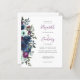 Le bord gauche de cette faire-part de mariage romantique est orné d'un bouquet floral aquarelle de prune, de fleurs et de verdure bleu marine et pourpre. Le texte personnalisable combine écriture de prune avec cuivre gris fusain et polices italiques sur un arrière - plan blanc. L'envers offre de l'espace pour les détails mariages sur un arrière - plan blanc solide, ainsi qu'un code QR que les clients peuvent scanner pour visiter votre site Web et RSVP, ce qui permet d'économiser le coût d'impression et d'envoi de cartes RSVP séparées.