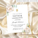 Un arrière - plan blanc décoré d'eucalyptus, de fleurs blanches (pivoines), de feuilles dorés. Personnalisez et un nom et des détails de la cérémonie. Retour : arrière - plan blanc. Vous pouvez ajouter n'importe quelle couleur arrière - plan que vous voulez en cliquant sur "modifier la conception", puis sur le calque arrière - plan à gauche.