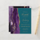 Le bord gauche est doté d'une bordure d'aquarelle mauve, recouverte d'une fausse parties scintillant dorée. Le texte personnalisable combine écriture manuscrite dorée, cuivre et polices italiques sur un arrière - plan bleu turquoise. Le design d'agate violet et or est répété au dos de la carte.