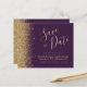 Cet élégant budget enregistrer la carte date comporte une bordure de fausse parties scintillant or le long du bord gauche. Le texte personnalisable combine des scripts d'écriture fantaisie de couleur or, des polices de cuivre et d'italique sur un arrière - plan violet foncé. L'envers présente une parties scintillant violet et dorée assortie.