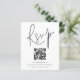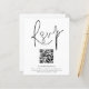 Un rapport qualité-prix BUDGET alternative sur une taille plus petite 4,5 x 5,6" semi-brillant poids 110lbs, qui est d'une épaisseur similaire à une carte postale (cependant ne convient pas à l'utilisation comme carte postale.) VEUILLEZ NOTER qu'il y a UN invitation par feuille. Code QR Script Wedding RSVP. Un boîtier d'option pratique pour demander à vos invités de scanner votre code QR vers votre site Web mariage à RSVP. Une typographie stylisée en noir pour le titre principal RSVP complétant le reste du texte que vous pouvez facilement personnaliser.