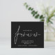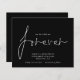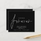 QR Code Nous Avons Décidé Sur Forever Black Enregistrer La Date. Un prix économique PETIT 4,5 po x 5,6 po alternatif. Disponible dans un STOCK SEMI-GLOSS 110 lb CARD qui est l'option par défaut (plus épais pour les invitations), OU un STOCK SATIN FINISH 80 lb THINNER PAPER (idéal pour les boîtiers). Ajoutez votre code QR à votre site Web mariage au verso en remplaçant le code QR de l'exemple. La typographie blanche sur le design noir classique pour invitation vos invités pour sauver votre date. Nous avons décidé sur Forever qui est dans un stylé script est au centre. Le reste du texte que vous pouvez facilement personnaliser. Les couleurs du texte et de l'arrière - plan peuvent être modifiées si vous souhaitez mieux convenir à votre thème mariage via l'option customiser plus loin.