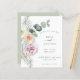 Budget Boho QR Code Eucalyptus Florals Mariage Date de sauvegarde. Un prix économique PETIT 4,5 po x 5,6 po alternatif. Disponible dans un STOCK SEMI-GLOSS 110 lb CARD qui est l'option par défaut (plus épais pour les invitations), OU un STOCK SATIN FINISH 80 lb THINNER PAPER (idéal pour les boîtiers). Ajoutez votre code QR à votre site Web mariage au verso. Style bohème pastel moderne, avec feuillage et fleurs en rose et vert sauge le long de la gauche et typographie à droite. Un vert sage coordonné est sur le dos. Personnalisez facilement le texte à vos propres détails.