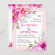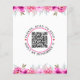 BUDGET rose aquarelle fleurs vert floral faire-part de mariage avec code QR pour RSVP. Il présente des bouquets de fleurs dans les tons roses chauds aux coins tandis que votre texte est placé dans un cadre blanc avec une bordure rose vif. L'arrière comprend des guirlandes fleuries sur les parties supérieure et inférieure et le code QR.