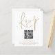 Un rapport qualité-prix BUDGET alternative sur une taille plus petite 4,5 x 5,6" semi-brillant poids 110lbs, qui est d'une épaisseur similaire à une carte postale (cependant ne convient pas à l'utilisation comme carte postale.) VEUILLEZ NOTER qu'il y a UN invitation par feuille. Budget QR Code Gold Script Wedding RSVP. Un boîtier d'option pratique pour demander à vos invités de scanner votre code QR vers votre site Web mariage à RSVP. Une typographie stylisée en or pour le titre principal RSVP complétant le reste du texte que vous pouvez facilement personnaliser.