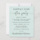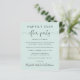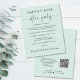 Elégant petit-déjeuner vert menthe ou faire-part mariage privé et accueil. L'avant présente "Happily Ever After Party" en typographie simple et un script élégant avec des swashes; personnalisez votre faire-part et invitation et ajoutez vos noms dans un script signature. Au contraire, ajoutez l'adresse de votre site Web mariage pour créer un code QR que les invités peuvent scanner pour suivre vos photos mariages, tous les détails et RSVP en ligne, et ajoutez vos prénoms et vos dates de mariage et de réception.
