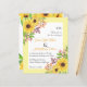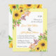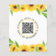 FAIRE-PART DE MARIAGE vert fleuri couleur jaune BUDGET avec code QR pour RSVP. Il présente des bouquets de tournesols dans les tons jaunes aux coins tandis que votre texte est placé dans un cadre blanc avec une bordure jaune pâle. Le dos comprend des guirlandes fleuries de tournesols sur les parties supérieure et inférieure et le code QR.