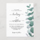 Famille d'Invitations et amis à votre fête mariage avec cette élégante faire-part de mariage tout-en-un. Il est décoré de sprigs d'eucalyptus aquarelle dans les tons verts. Économisez du papier en incluant les détails au verso du faire-part de mariage, plutôt que sur des cartes séparées du boîtier. Inclure votre site Web mariage QR Code. Aquarelle originale © Michele Davies.
