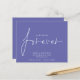 Un rapport qualité-prix BUDGET alternative sur une taille plus petite 4,5 x 5,6" semi-brillant poids 110lbs, qui est d'une épaisseur similaire à une carte postale (cependant ne convient pas à l'utilisation comme carte postale.) VEUILLEZ NOTER qu'il y a UN invitation par feuille. Budget QR Code Nous avons décidé sur Forever Blue Enregistrer la date. Ajoutez votre code QR à votre site Web mariage au verso. Un design simple sur perwinkle bleu violet pour invitation vos invités pour sauver votre date. Nous avons décidé sur Forever qui est dans un script stylé est au centre.Le reste du texte que vous pouvez facilement personnaliser. Les couleurs du texte et de l'arrière - plan peuvent être modifiées si vous souhaitez mieux convenir à votre thème mariage via l'option customiser plus loin.