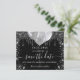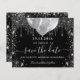 Une fille et tendance Sauvez la Date pour une Quinceañera, 15ème anniversaire fête. Un arrière - plan noir décoré de faux parties scintillant argentées goutte à goutte, éclat et ballons. Personnalisez et ajoutez une date et un nom/âge. Le texte : Save the Date est écrit avec un grand script de style à la main tendance.