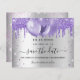 Un arrière - plan faux argenté décoré de parties scintillant et de ballons violet, couleur lavande. Personnalisez et ajoutez une date et un nom/âge. Le texte : Save the Date est écrit avec un grand script de style à la main tendance.