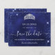 Une petite fille et tendance Enregistrer la carte Date pour une Quinceañera, 15e anniversaire fête. Un arrière - plan bleu inégal. Décoré avec de la poussière de parties scintillant imitation et une tiare, couronne. Le texte : Save the Date est écrit avec un grand script de style à la main tendance.