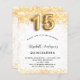Pour une Quinceañera élégante, fête du 15e anniversaire. Un arrière - plan blanc chic. Décoré de parties scintillant en faux or, brille. Personnalisez et ajoutez un nom, un âge et des détails de la fête. Le nom est écrit avec un script de style écrit à la main. Numéro 15 avec police de style ballon.