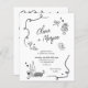 Ce faire-part de mariage est doté d'un design de gribouillis fantaisiste et ludique, ce qui en fait une invitation tout-en-un amusante et unique. L'avant présente les noms du couple dans une police de caractères moderne, accompagnée de doodles dessinés à la main d'objets festifs comme des verres à vin, des anneaux et un gâteau. Le dos fournit des détails mariages essentiels. L'invitation peut être rendue encore plus vibrante en changeant la couleur des emblèmes et du texte des doodles, ajoutant une touche personnalisée à ce design charmant. Vous pouvez le modifier en cliquant sur le bouton "Modifier à l'aide de l'outil de conception".