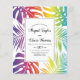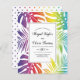 BUDGET Couleurs arc-en-ciel motif de feuilles tropicaux lesbiennes faire-part de mariage avec code QR sur le dos à RSVP en ligne. Il présente un motif coloré de monstères tropicales et de feuilles de palmiers aux couleurs arc-en-ciel et votre texte dans un cadre avec une bordure noire. Vos noms sont en typographie de script tandis que le verso inclut le code QR à RSVP en ligne.