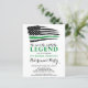 L'Homme Le Mythe La Légende ! Ligne verte mince Invitations militaires de retraite. Célébrez des années de service dévoué, votre retraite militaire et vos amis et votre famille invitations à votre parti militaire avec cette Invitation à la retraite militaire à drapeau vert mince moderne. Etats-Unis Drapeau américain dans les couleurs Police Drapeau, noir vert peint blanc design. Consultez notre collection pour obtenir des cadeaux de retraite, des faveurs pour les militaires et des fournitures. DROIT D'AUTEUR © 2021 Judy Burrows, Black Dog Art - Tous droits réservés. Budget Retraite militaire Légende de la ligne verte mince
