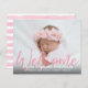** LE PAPIER SATIN EST PAPIER MINCE. METTEZ À NIVEAU LE PAPIER POUR UN PAPIER PLUS ÉPAISSE. A UNE OPTION POUR ENVELOPPES. *** Économisez de l'argent sur les invitations avec cette petite invitation qui a une option pour les enveloppes. Célébrez votre nouveau-né avec votre Faire-part Bébé Pink Accueillant 1Photo. Version photo multiple disponible. Vous voulez une version plus grande ? Consultez notre collection Baby Annonces & Shower pour les cartes. https://www.zazzle.com/collections/baby_shower_invitations_birth_announcements-119377110354210702?rf=238937196885903396