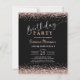 Célébrez un siècle de souvenirs avec le Rose Budget Gold Black Any Age Invitation anniversaire 100th. Bénéficiant d'un effet rose de parties scintillant or sur un arrière - plan noir élégant, cette invitation abordable et élégante est parfaite pour honorer une étape spéciale d'une manière élégante.