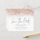 Un rapport qualité-prix BUDGET alternative sur une taille plus petite 4,5 x 5,6" semi-brillant poids 110lbs, qui est d'une épaisseur similaire à une carte postale (cependant ne convient pas à l'utilisation comme carte postale.) VEUILLEZ NOTER qu'il y a UN par feuille. Budget Rose Gold Parties scintillant Mariage Enregistrer La Date. Une touche de scintillement avec des bordures de parties scintillant en or rose de part et d'autre. Enregistrer la date est dans un script moderne.Le reste du texte que vous pouvez facilement personnaliser.