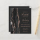 Le bord gauche de cette élégante faire-part de mariage moderne est orné d'une bordure en aquarelle noire ornée d'une parties scintillant en or rose. Le texte personnalisable associe écriture rose, copperplate et polices italiques sur un arrière - plan gris fusain foncé. Ajoutez des détails supplémentaires au verso, ainsi qu'un code QR pour aider vos invités à visiter votre site Web mariage.