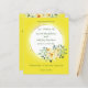 Roses et feuilles avec cadre circulaire doré sur l'arrière - plan jaune, à l'arrière vous pouvez écrire des informations supplémentaires pour vos invités