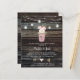 Budget Rustic Couples Douche Mason Jar Lights Boho Floral Invitation - L'invitation parfaite pour budget pour la mariée et mariée qui aime un thème rustique. L'invitation présente une bocale de mason rose rousse remplie de fleurs avec des lumières de bocaux de mason brillants suspendues au-dessus, sur arrière - plan rustique en bois d'écorce. Détails supplémentaires au verso de l'invitation. Notre modèle d'invitation de haute qualité facilite la personnaliser de votre invitation. Veuillez noter qu'il s'agit d'une option budgétaire. Si vous êtes intéressé par un stock plus épais, veuillez sélectionner notre option d'invitation à plat ou par carte postale. Nous vous recommandons de ne pas choisir "satin" pour cette option. L'invitation fait partie d'une collection. Conçu par Beverly Bainbridge, Mariage designer Homespun Cottage Designs www.homespuncottagedesigns@gmail.com
