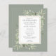 Doté de feuilles délicats en aquarelle sur un arrière - plan vert sage, cette invitation chic à déjeuner d'aumônières pour petits budgets peut être personnalisée avec vos détails spéciaux de l'événement. Conçu par Thisisnotme©