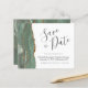 Cet élégant budget enregistrer la carte date dispose d'une bordure d'aquarelle verte sage découpée avec une parties scintillant en faux or. Le texte personnalisable combine le script d'écriture manuscrite gris charbon, les polices cuivre et italique sur un arrière - plan blanc. L'envers est assorti d'un design d'agate vert sauge et or.