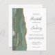 The left-hand edge of this elegant modern wedding invitation features a sage green watercolor agate border trimmed with faux gold glitter. The customizable text combines handwriting, copperplate and italic fonts in charcoal gray on a white background. The reverse side provides space for wedding details on a solid white background, along with a QR code guests can scan to visit your website and RSVP. NOTE: Envelopes are not automatically included with these budget invitations, so please remember to choose the "white envelopes" option!