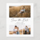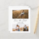 Budget Script 3 Photo Wedding Enregistrer la carte Date. Le dos contient des détails supplémentaires. Cliquez sur le bouton Modifier pour customiser cette conception avec vos photos et les détails du mariage.
