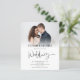 NOTE IMPORTANTE : Il existe deux options de papier parmi lesquelles choisir pour cette taille (4,5 x 5,6 pouces) dans la gamme Budget. Pour ce produit, je recommande vivement le semi-brillant qui est un papier cartonné de 110 g/m², d'une épaisseur similaire à celle d'une carte postale. L'option Satin est un papier beaucoup plus fin de 80 g/m². La valeur par défaut est définie sur semi-brillant. Faire-part de mariage avec superposition de photo et code QR de script Budget. Un script défini pour le mariage et le reste du texte que vous pouvez facilement personnaliser et remplacer la photo exemple par la vôtre. Vous pouvez également modifier les couleurs du texte et de l'arrière-plan de chaque côté si vous le souhaitez. Remplacez simplement l'URL exemple dans le champ du modèle par votre propre URL et votre code QR sera créé automatiquement.