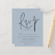 Un rapport qualité-prix BUDGET alternative sur une taille plus petite 4,5 x 5,6" semi-brillant poids 110lbs, qui est d'une épaisseur similaire à une carte postale (cependant ne convient pas à l'utilisation comme carte postale.) VEUILLEZ NOTER qu'il y a UN invitation par feuille. Budget Script Dusty Blue Wedding RSVP Une typographie stylée en noir pour le titre principal RSVP complétant le reste du texte que vous pouvez facilement personnaliser.