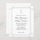 Cette invitation de mariage présente un design noir et blanc épuré et classique qui se révèle intemporel et élégant. Elle comporte une simple bordure à double ligne avec des détails de coins adoucis qui encadrent magnifiquement la mise en page. En haut, un monogramme ovale raffiné apporte une touche personnelle. Le mélange de polices de caractères script et serif lui confère une atmosphère romantique et formelle rappelant la calligraphie traditionnelle, mais avec une touche moderne. Un excellent choix pour les couples qui aiment le style minimaliste avec une pointe de charme vintage.