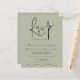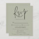 Script Budget Pale Soft Sage Green Wedding RSVP avec choix de menu. Un prix économique PETIT 4,5 po x 5,6 po alternatif. Disponible dans un STOCK CARD SEMI-GLOSS 110 lb qui est l'option par défaut (plus épais pour les invitations). Les enveloppes sont en option et légèrement plus grandes que la taille de la carte. Une typographie stylisée en noir pour le titre principal RSVP complétant le reste du texte que vous pouvez facilement personnaliser.