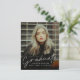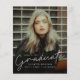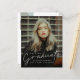 Cette invitation à la graduation photo moderne et élégante comprend une superposition avec un script et un nom personnalisable, l'école et la photo sur le devant. Le dos offre des fêtes et des détails de l'événement avec 2 photos supplémentaires. Une excellente façon de présenter votre diplômé.