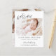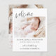 Budget Simple Bébé Faire-part Élégant Photo Collage qui ont une photo sur le devant et 4 Photo sur le dos. Les cartes contiennent une typographie manuscrite moderne lettrée cursive qui sont élégantes, simples et modernes à utiliser pour un nouveau-né bébé garçon ou petite fille envoyé par la mère et le père de l'enfant bébé à la famille et amis.