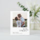 Scénario minimaliste de typographie chic noir et blanc BUDGET ABORDABLE mariage enregistrer la carte de date avec photo et texte personnalisés. +++++++++++++++ Convient pour un printemps moderne et rustique automne ou mariage d'hiver.