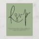 Simple QR Code Script Mariage Sage Green RSVP. Un boîtier d'option pratique pour demander à vos invités de scanner votre code QR vers votre site Web mariage à RSVP. Une alternative économique de 4,5 po x 5,6 po. Disponible dans un STOCK SEMI GLOSS 110 lb CARD ou un STOCK SATIN FINISH 80 lb THINNER PAPER. Une typographie stylisée pour le titre principal RSVP complétant le reste du texte que vous pouvez facilement personnaliser, avec le code QR au dos. Remplacez simplement par le vôtre.