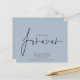 Un rapport qualité-prix BUDGET alternative sur une taille plus petite 4,5 x 5,6" semi-brillant poids 110lbs, qui est d'une épaisseur similaire à une carte postale (cependant ne convient pas à l'utilisation comme carte postale.) VEUILLEZ NOTER qu'il y a UN invitation par feuille. Budget Nous avons décidé sur Forever Blue Enregistrer La Date. Un design simple sur bleu poussiéreux pour invitation vos invités pour sauver votre date. Les enveloppes sont en option. Nous avons décidé sur Forever qui est dans un script stylé est au centre.Le reste du texte que vous pouvez facilement personnaliser. Les couleurs du texte et de l'arrière - plan peuvent être modifiées si vous souhaitez mieux convenir à votre thème mariage via l'option customiser plus loin.