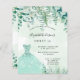 Une invitation branchée pour une Sweet 16, 16ème anniversaire fête, thème forestier enchanté. Un arrière - plan vert à l'eau avec des fougères et de la verdure d'eucalyptus, une robe verte. Le nom est écrit avec un script de style moderne écrit à la main. Personnalisez et ajoutez les détails de votre fête.