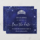 Une fille et tendance Enregistrer la carte Date pour une Sweet 16, 16e anniversaire fête. Un arrière - plan bleu inégal. Décoré avec de la poussière de parties scintillant imitation et une tiare, couronne. Le texte : Save the Date est écrit avec un grand script de style à la main tendance.