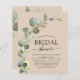 Fêtez la mariée à être en style avec notre magnifique invitation à la douche nuptiale d'eucalyptus. Ce magnifique design présente d'élégants feuilles d'eucalyptus contre un arrière - plan doux et neutre, ce qui en fait le choix idéal pour une douche de mariée à thème botanique. Rendez la journée spéciale de la future mariée encore plus mémorable avec notre incroyable invitation à la douche nuptiale d'eucalyptus. Avec son design magnifique et ses options personnalisables, c'est la façon parfaite de partager la joie et l'excitation des noces à venir avec la famille et les amis. Commandez les vôtres dès aujourd'hui !