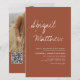 Budget Personnalisez cette Boho Simple Elegant Terracotta Burnt Orange and White Stylish Invitation avec votre message et détails avec une photo élégante au dos avec QR Code RSVP. Cette invitation minimaliste comprend une typographie manuscrite stylisée avec une couleur moderne pour la célébration spéciale du mariage.