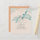 Les tortues de mer turquoises, turquoise et bleue et les feuilles tropicaux font partie de ce faire-part de mariage moderne sur le thème de la mer de la vie océanique ou de sauvegarder l'article de date. Les champs de modèle texte des deux côtés vous permettent d'ajouter tous vos détails supplémentaires, y compris rsvp, registre des cadeaux, détails de réception, itinéraires, etc.
