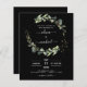 Budget All in One Black Eucalyptus Greenery Succulent Botanical Watercolor Spring Wedding Invitations on White arrière - plan - comprend une belle et élégante typographie script avec des feuilles botaniques modernes et la verdure pour la célébration spéciale de mariage.