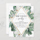 Budget Tropical Magnolia Flowers with Floral Greenery Palm and Faux Gold Foil Frontière géométrique Printemps ou été N'importe quel âge Anniversaire Fête Invitations - comprend belle et élégante typographie avec des fleurs botaniques tropicales modernes et la verdure pour les 13ème, 15ème, 16ème, 18ème, 30ème, 40ème, 50ème, 60ème 70e, 80e, 90e, 100e anniversaire.