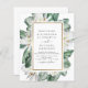 Budget Tropical Magnolia Flowers with Floral Greenery Palm and Faux Gold Foil Frontière géométrique Printemps ou Evénement Mariage Invitations - comprend une belle et élégante typographie script avec des fleurs tropicales modernes et la verdure pour la célébration spéciale de mariage.