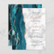 Le bord gauche de cette élégante faire-part de mariage moderne est doté d'une bordure turquoise en aquarelle bleue ornée d'une parties scintillant d'or en faux rose. Le texte personnalisable combine écriture rose poussiéreuse avec cuivre noir et polices italiques sur un arrière - plan en marbre gris et blanc. L'envers présente un design d'agate or turquoise et rose assorti.