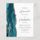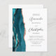 Le bord gauche de cette élégante faire-part de mariage moderne est doté d'une bordure turquoise en aquarelle bleue ornée d'une parties scintillant d'or en faux rose. Le texte personnalisable combine le script gris charbon et les polices sans serif sur un arrière - plan blanc. L'envers offre de l'espace pour les détails mariages sur un arrière - plan blanc solide, ainsi qu'un code QR que les clients peuvent scanner pour visiter votre site Web et RSVP, ce qui permet d'économiser le coût d'impression et d'envoi de cartes RSVP séparées.
